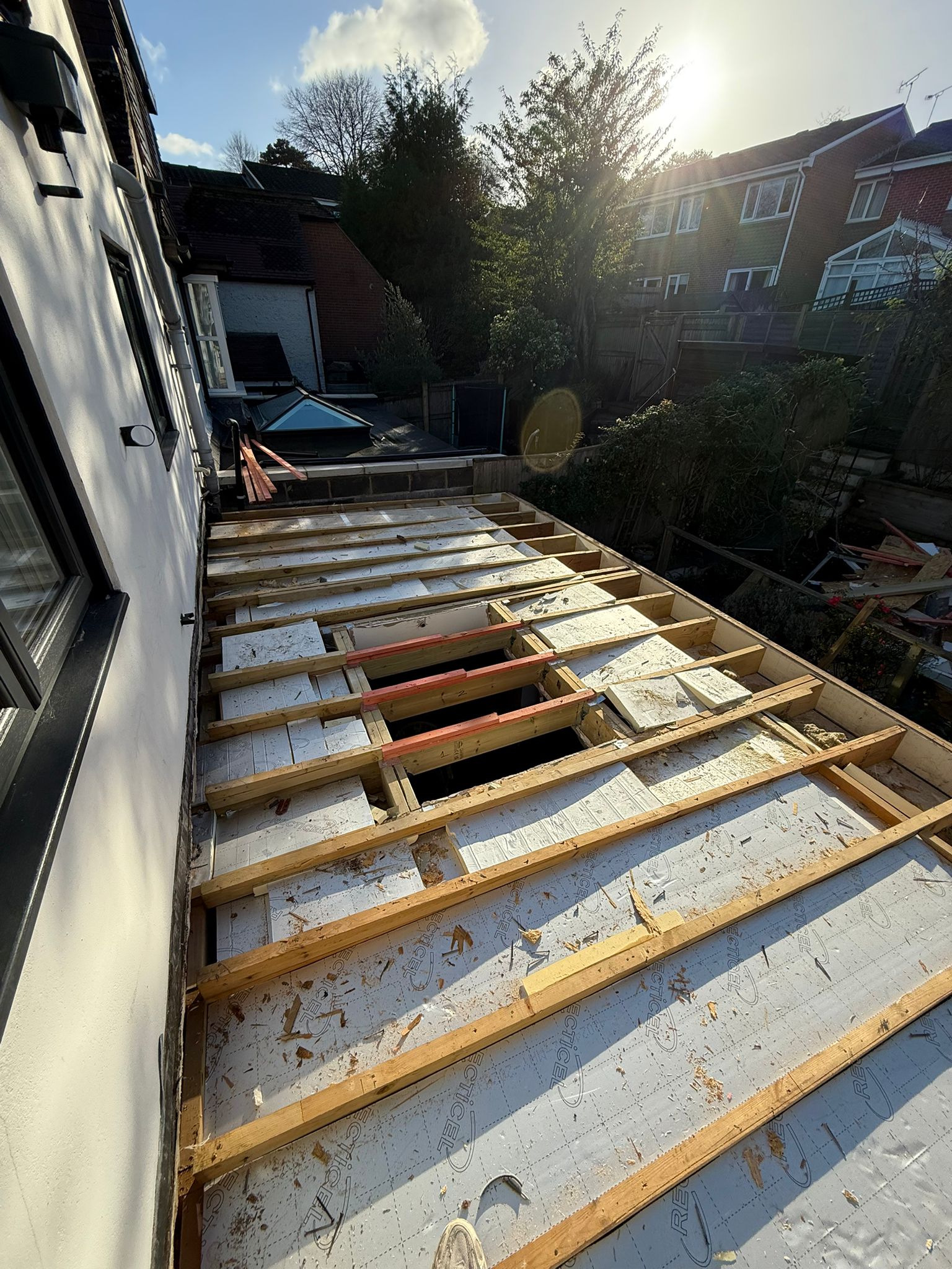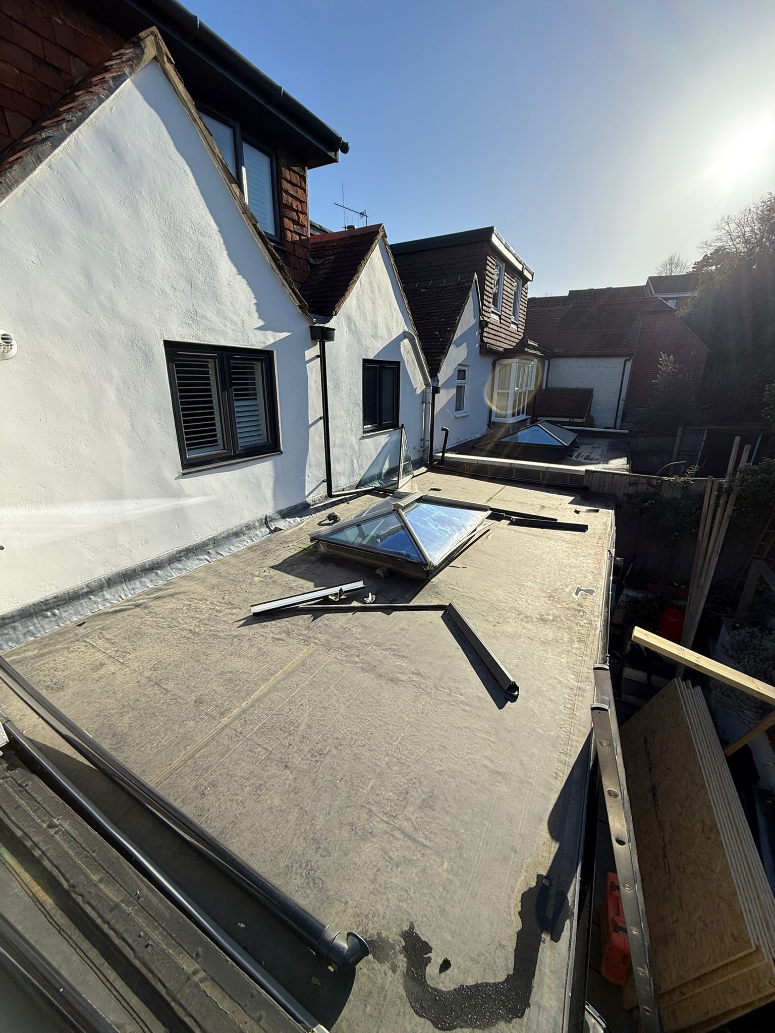 TCG South Roofing recently completed a full flat roof replacement in Winchester, Hampshire after a failing rubber roof and defective skylight caused ongoing issues for the homeowner. Previous repairs had failed, so a permanent solution was required.